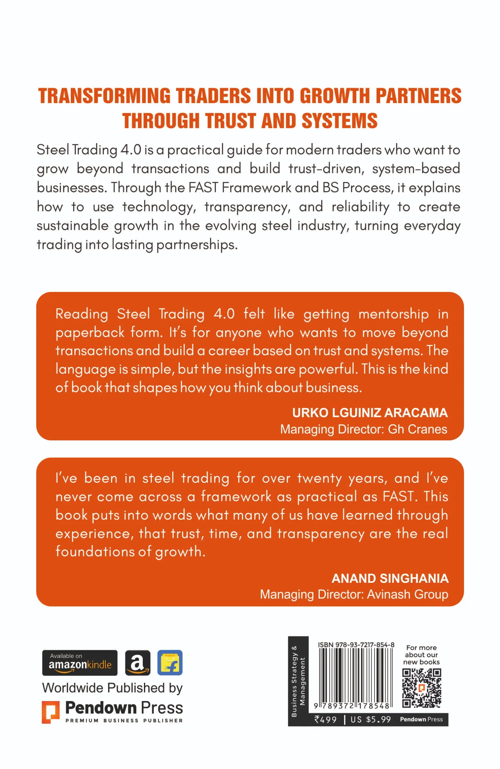 Steel Trading 4.0 is a practical guide for modern traders who want to grow beyond transactions and build trust-driven, system-based businesses. Through the FAST Framework and BS Process, it explains how to use technology, transparency, and reliability to create sustainable growth in the evolving steel industry, turning everyday trading into lasting partnerships.