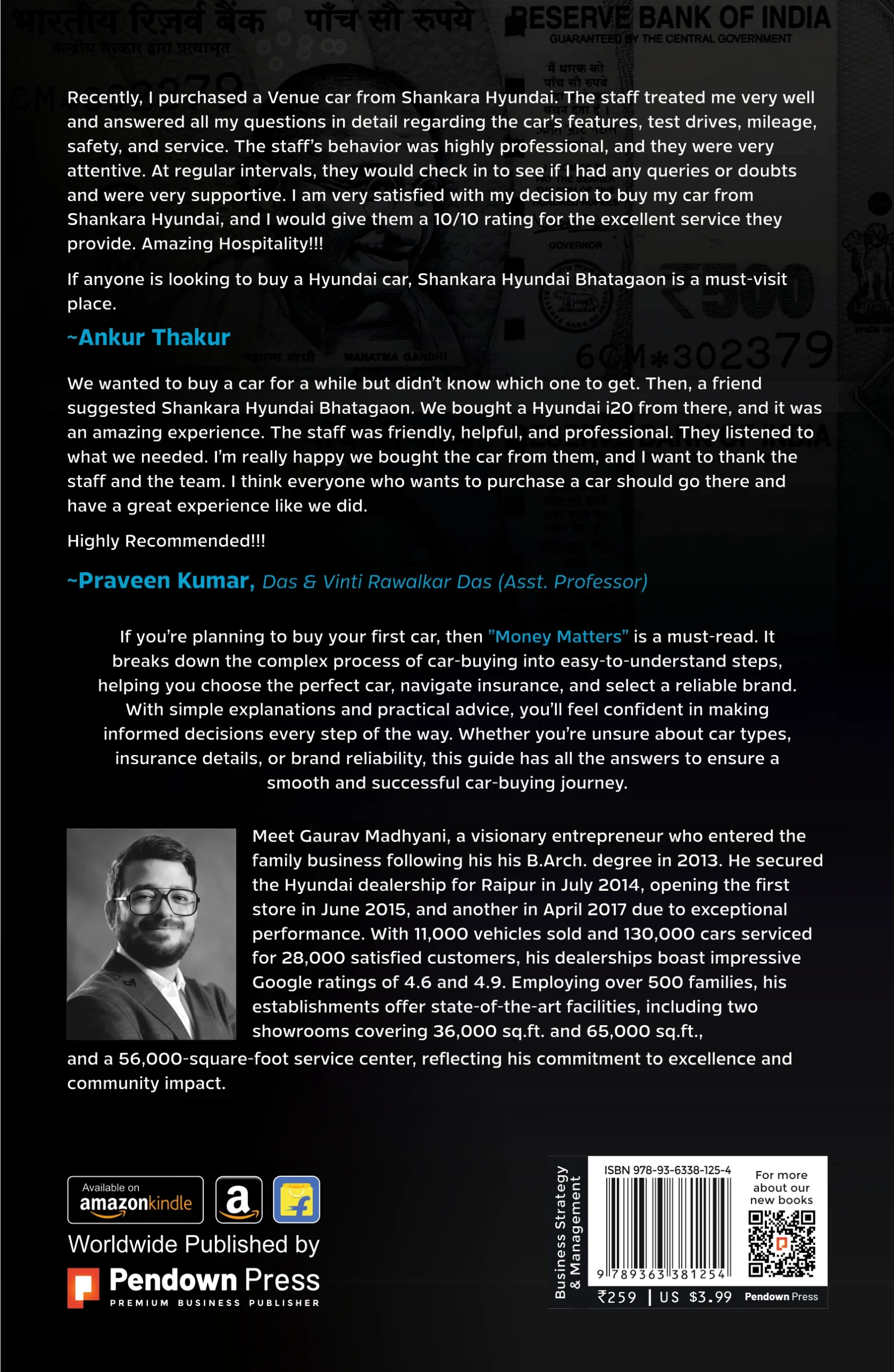 Meet Gaurav Madhyani, a visionary entrepreneur who entered the family business following his B.Arch. degree in 2013. He secured the Hyundai dealership for Raipur in July 2014, opening the first store in June 2015 and another in April 2017 due to exceptional performance. With 11,000 vehicles sold and 130,000 cars serviced for 28,000 satisfied customers, his dealerships boast impressive Google ratings of 4.6 and 4.9. Employing over 500 families, his establishments offer state-of-the-art facilities, including two showrooms covering 36,000 sq.ft. and 65,000 sq.ft. and a 56,000-square-foot service center, reflecting his commitment to excellence and community impact.