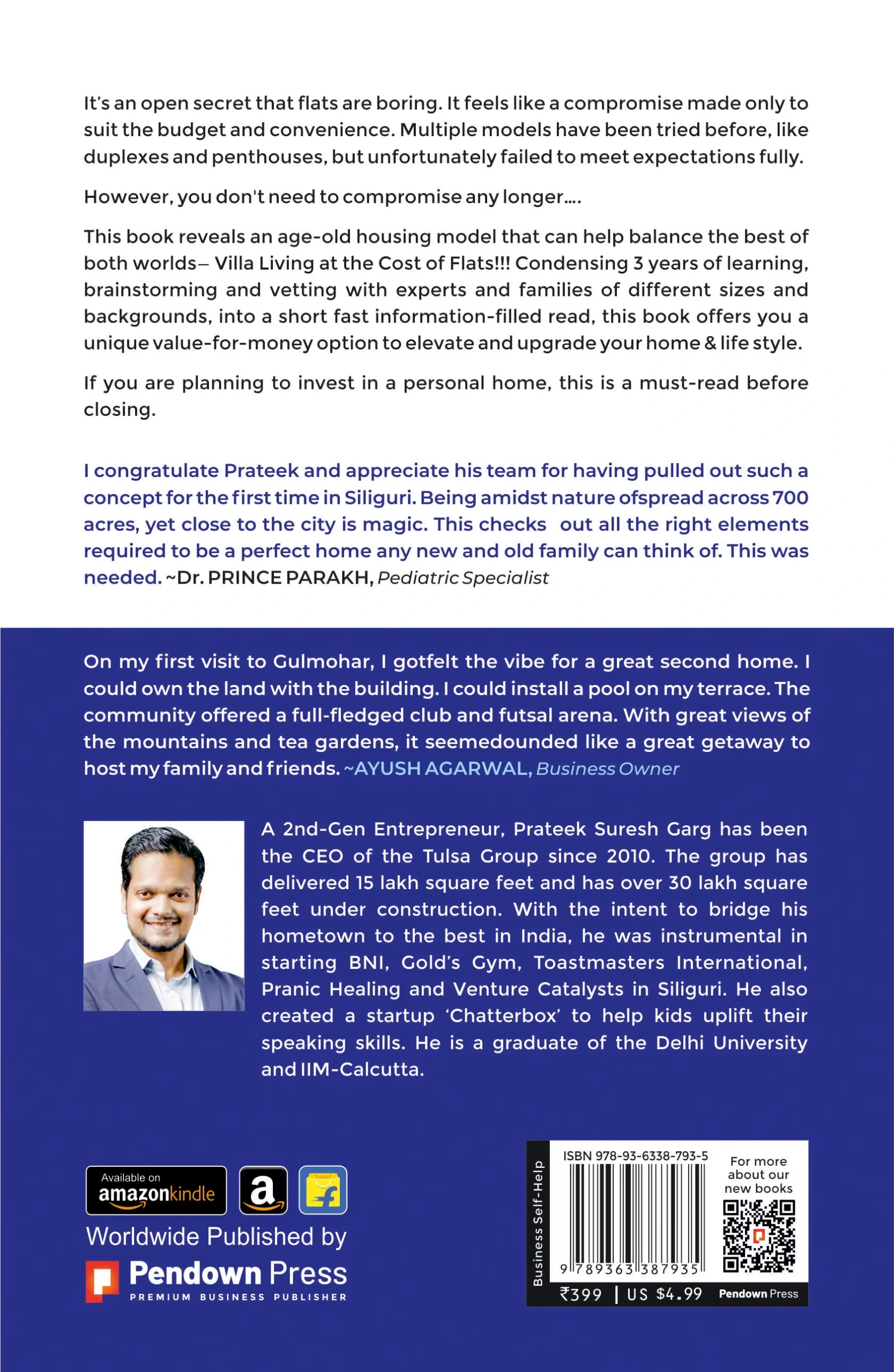 This book reveals an age-old housing model that can help balance the best of both worlds- Villa Living at the Cost of Flats!!! Condensing 3 years of learning. Brainstorming and vetting with experts and families of different sizes and backgrounds, into a short fast information-filled read, this book offers you a unique value-for-money option to elevate and upgrade your home & life style.